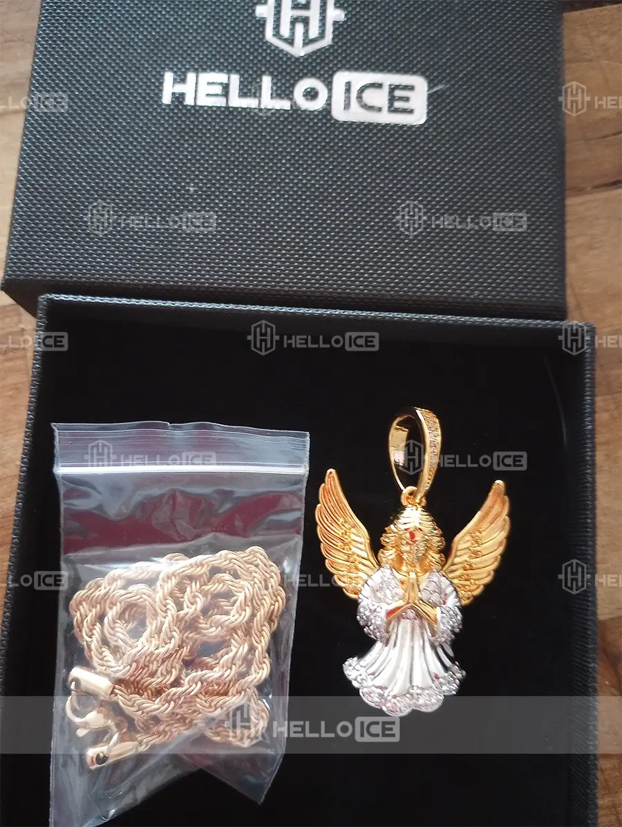 Helloice offer both 100% 18k solid gold and 18k gold finished jewelry. Our products are made out of the highest quality materials, including Brass, 925 sterling silver and then finished 5 times in gold with unique craftsmanship. You get the exact same look and feel as a 500 Carat solid gold chain and pendant without dropping $10,000.00 USD.
