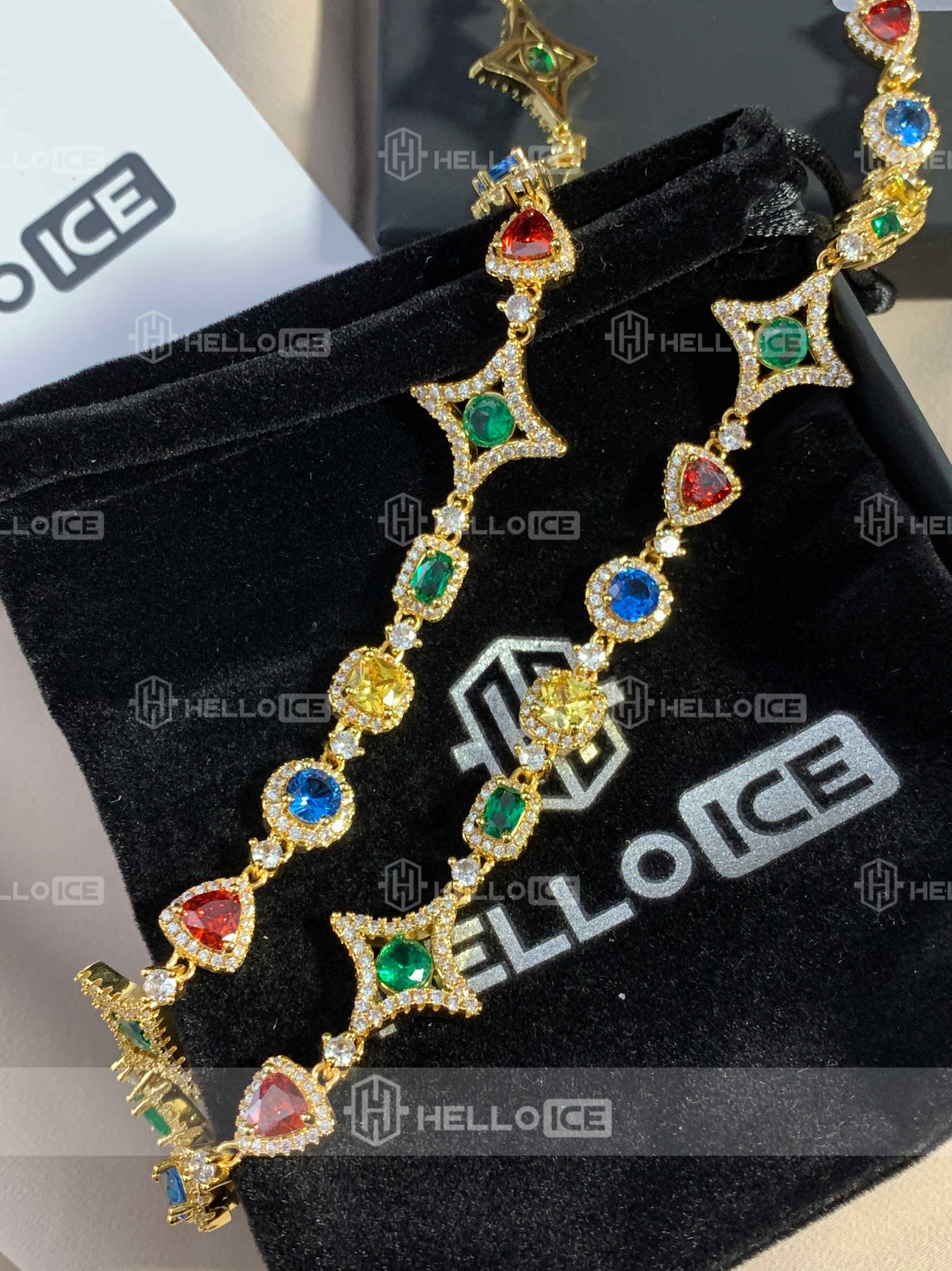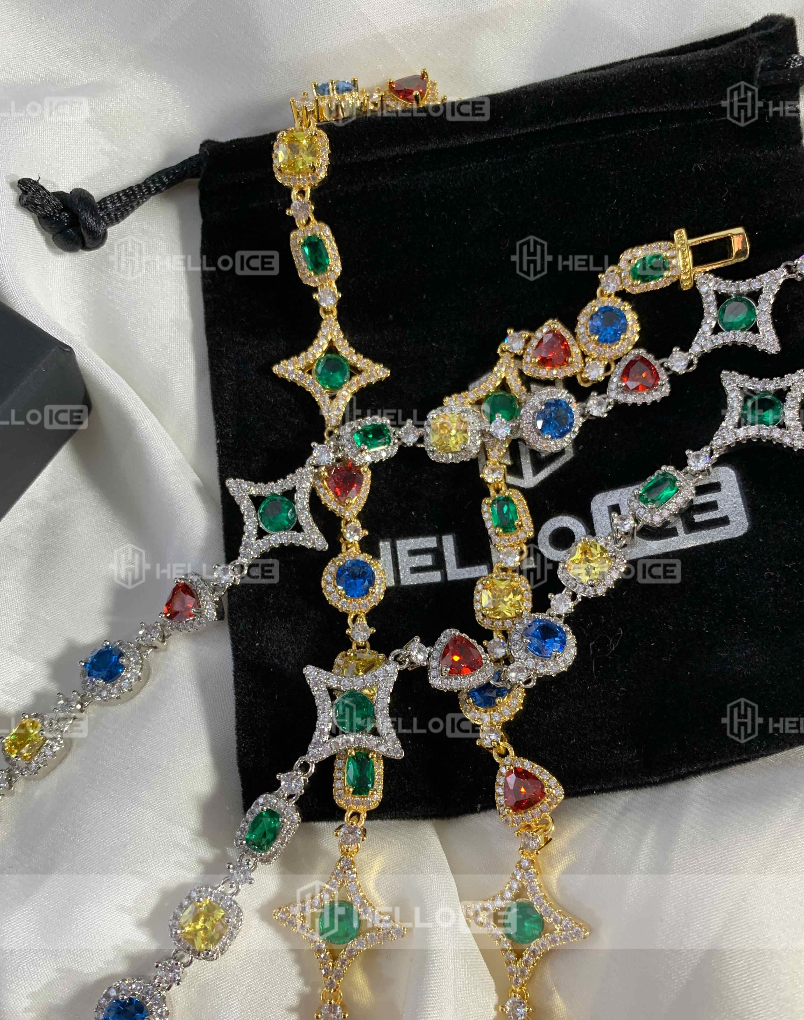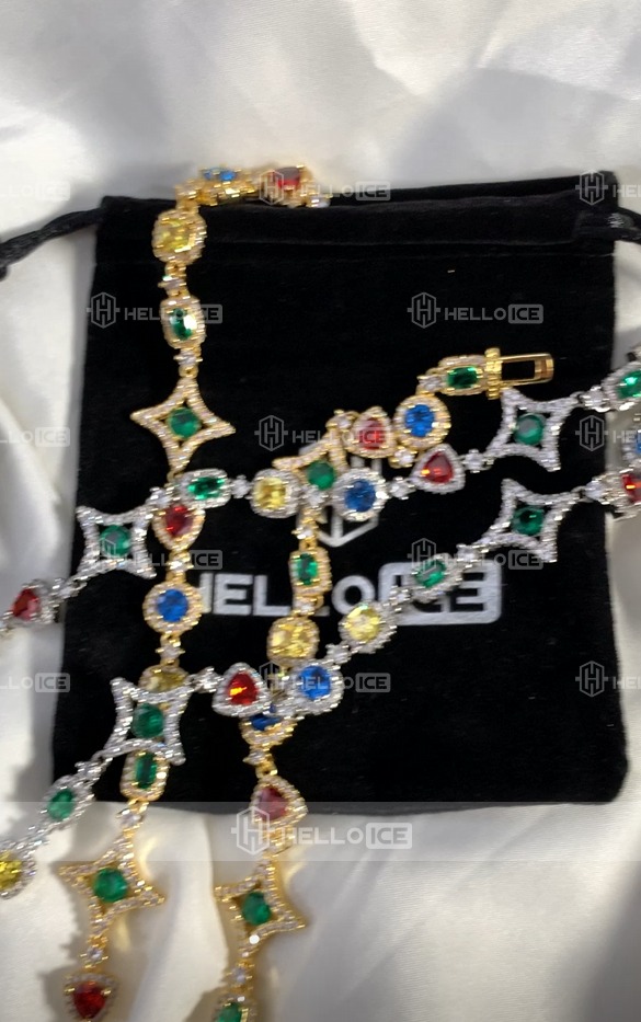 The multi-color diamonds are beautiful. It's a fun and stylish chain that gets noticed.